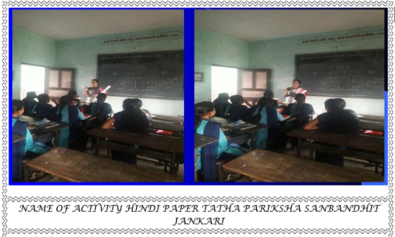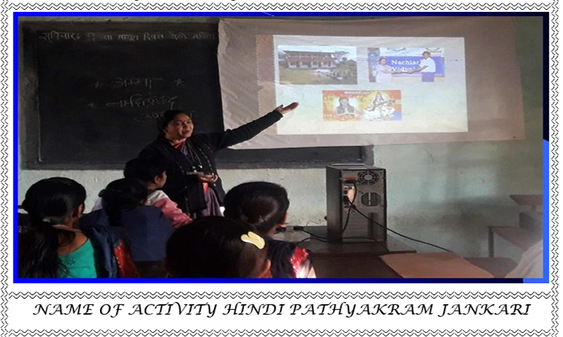 1)Hindi-Question Answer Group Discussion 2)oral Counseling to Girls’Student’s in Hindi2)Solving Hindi Sillybus&Curriculum Problems ETC….. |