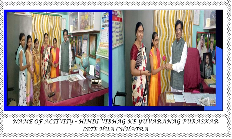 1) To Organised State Level National and International Conference and Seminar in Hindi.2) To Promote Research activities among the Students.3) To Enhance the Participation to the Student in Seminar and Group. |